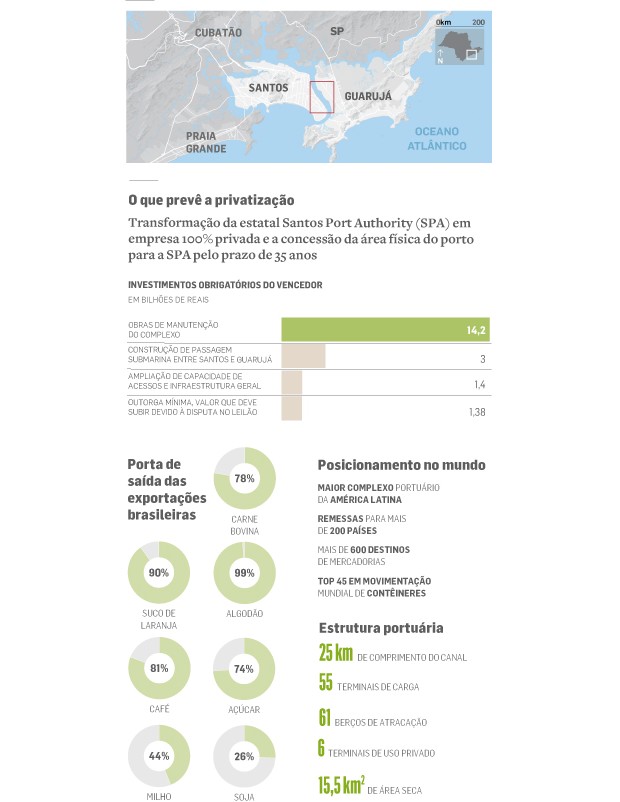 Com a licitação, a atual gestora do porto, a estatal Santos Port Authority (SPA, antiga Codesp), será integralmente privatizada e não retornará para a União. Já as áreas físicas do porto serão concedidas a esta mesma empresa pelo prazo de 35 anos, sem prorrogação.
