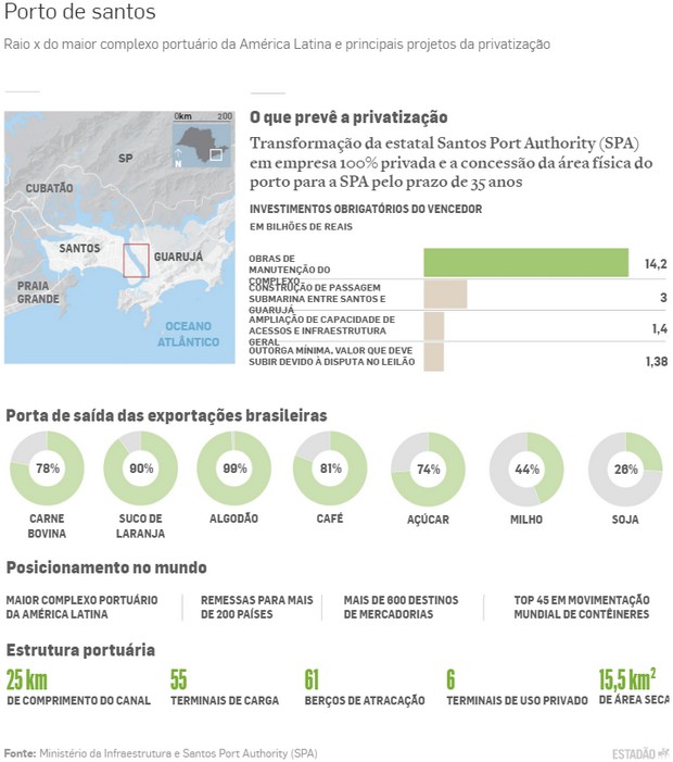 A decisão de privatizar o porto de Santos não reflete apenas uma visão sobre políticas públicas que defendam a redução do papel do Estado no setor. Na prática, esta é hoje a única forma encontrada para que o principal hub marítimo do hemisfério Sul faça frente à expansão que terá nos próximos 40 anos, já que não há dinheiro público que consiga assumir essa conta.